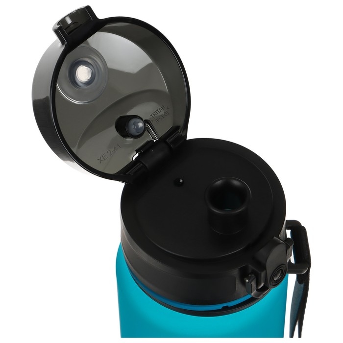 Бутылка изготовлена из экологичного материала — тритана. Он не выделяет и не впитывает запахов. Материал обладает высокой прочностью и защищает изделие от протеканий. Крышка выполнена из пластика, имеет силиконовое уплотнение. Инновационная система позволяет открывать бутылку нажатием одной кнопки. Крышка откидывается назад автоматически, имеет фиксатор, который предотвращает случайное открывание.