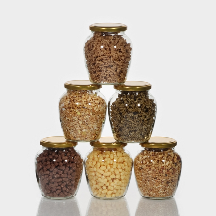 Набор стеклянных банок с жёлтой полимерной крышкой, ТО-82 мм, 450 мл, 6 шт.