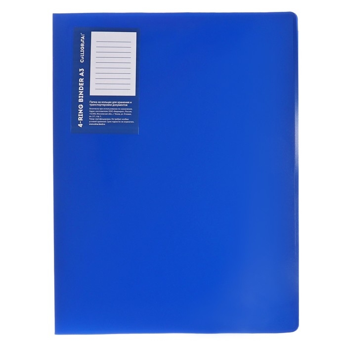 Папка на 4 кольцах А3, Calligrata "Standard" 27мм, 800 мкм, вертикальная, синяя
