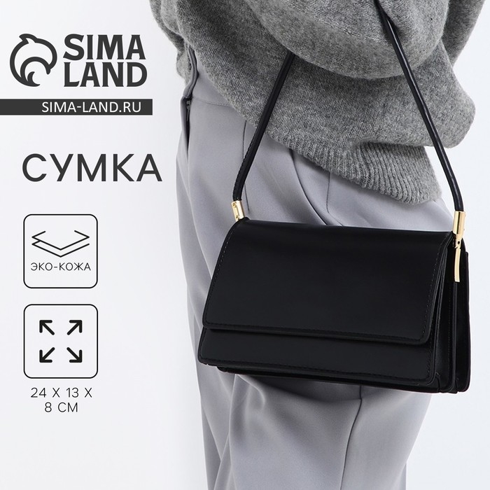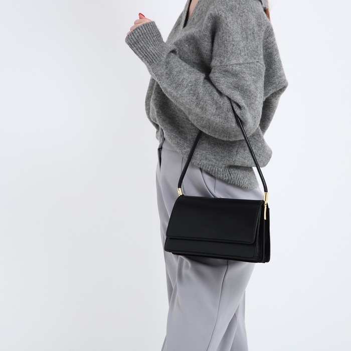 Сумка женская на клапане, 24х13х8 см, цвет чёрный