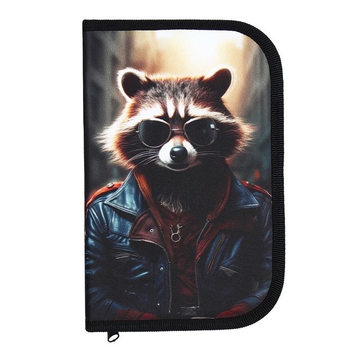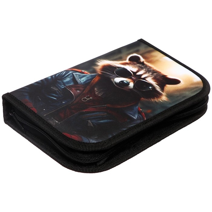 Пенал 1 секция, 130 х 210 х 40 мм, 2 откидные планки, тканевый, Calligrata TOP, Content "Енот"