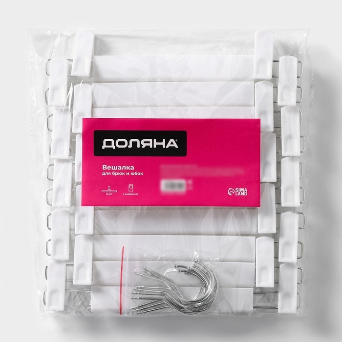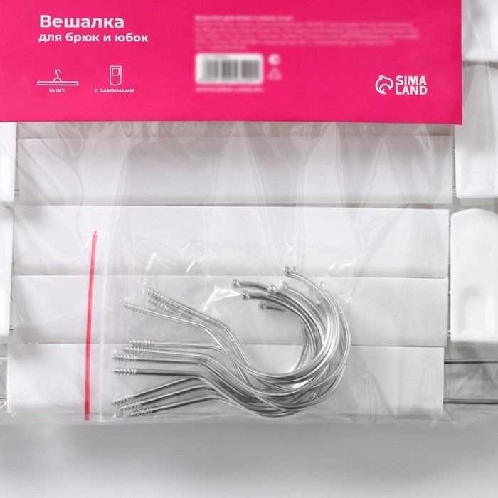 Вешалки для брюк и юбок Доляна, 29,5×13 см, 10 шт, с зажимами, цвет белый