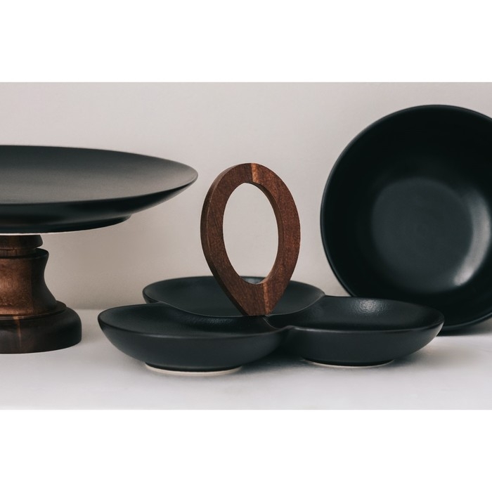 Уникальное сочетание чёрного матового фарфора и бамбуковых элементов сплетаются воедино в серии сервировочной посуды «Галактика»;. Эта коллекция станет идеальным выбором для тех, кто ценит элегантность и функциональность.