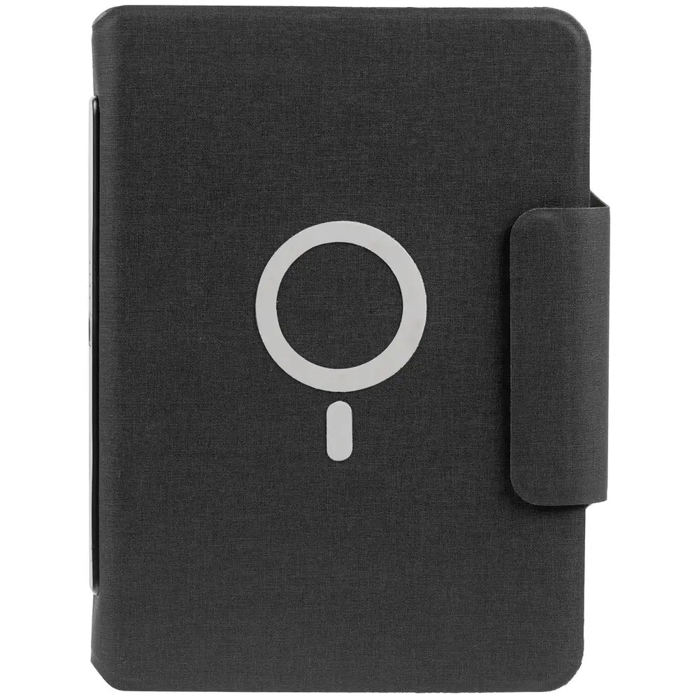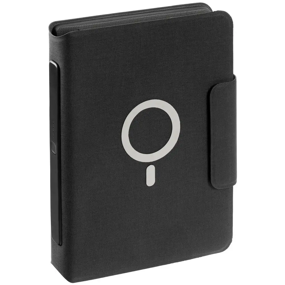 Органайзер с блокнотом и аккумулятором с беспроводной зарядкой. Обложка с фактурой, имитирующей ткань, на магнитной застежке.