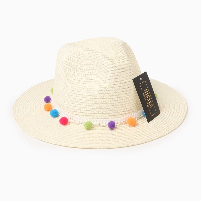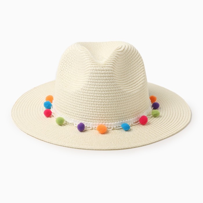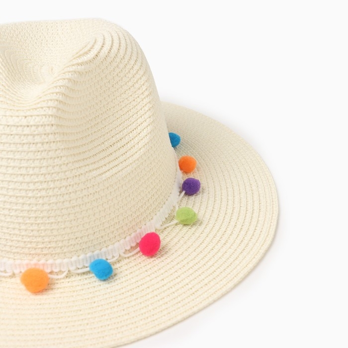 Шляпа женская с бомбошками, размер 54-56, цвет белый