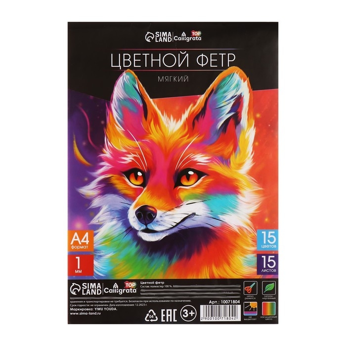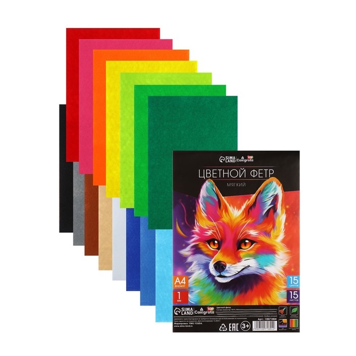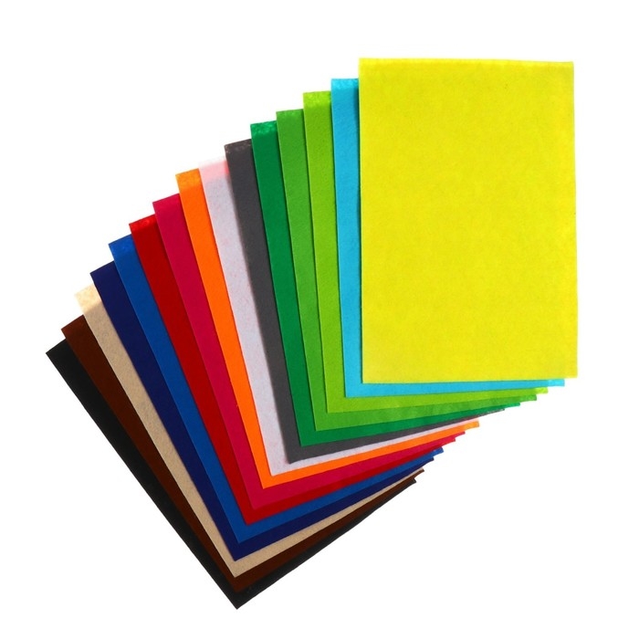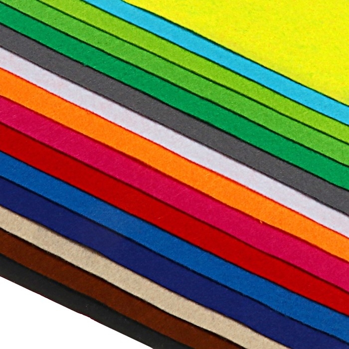 Фетр цветной набор, толщина-1 мм, формат А4, мягкий, 15 листов, 15 цветов, TOP