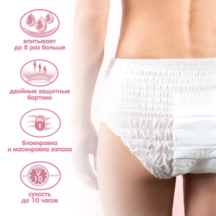 Ночные, менструальные, одноразовые впитывающие трусы KIOSHI – универсальный продукт для обильной менструации и последорового периода. Могут использоваться в качестве послеродовых одноразовых трусов для рожениц, а также после гинекологических процедур и операций. У каждых трусиков есть индивидуальная упаковка, легко взять несколько штук с собой.