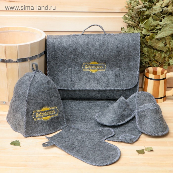 Набор банный "Мужской" портфель 5 предметов, серый, с вышивкой