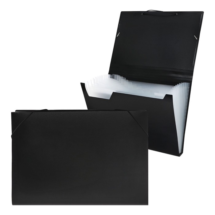 Папка картотека А4, Calligrata, 13 отделений, пластиковая, 700 мкм, чёрная