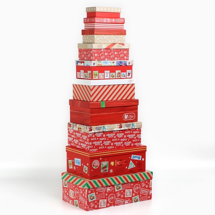 Набор подарочных коробок 10 в 1 «Новогодняя почта», 12 х 7 х 4 – 32.5 х 20 х 12.5 см, Новый год