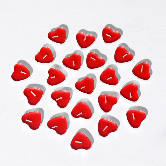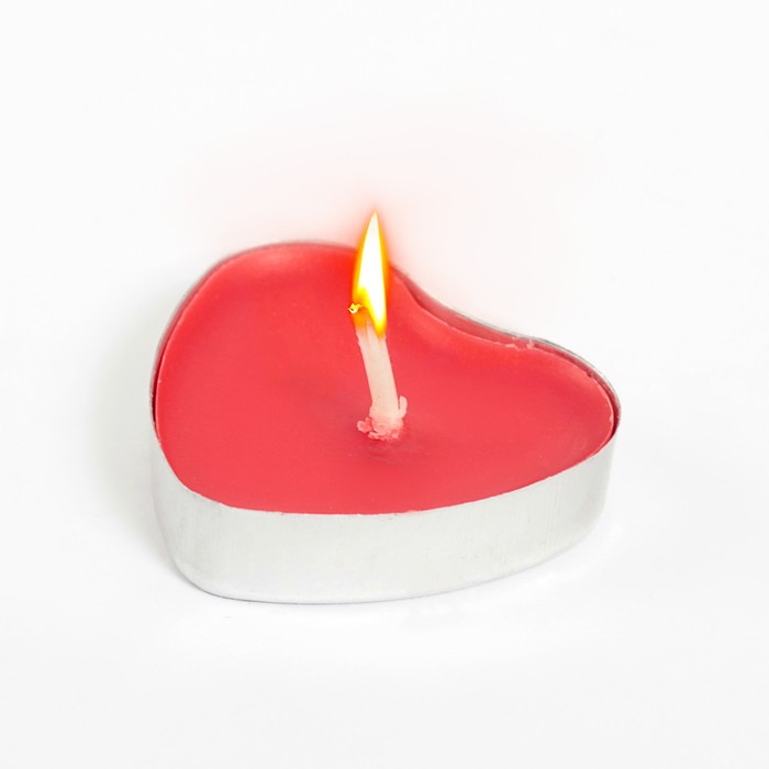 Свеча чайная "Сердце" 6г, 50шт, красные
