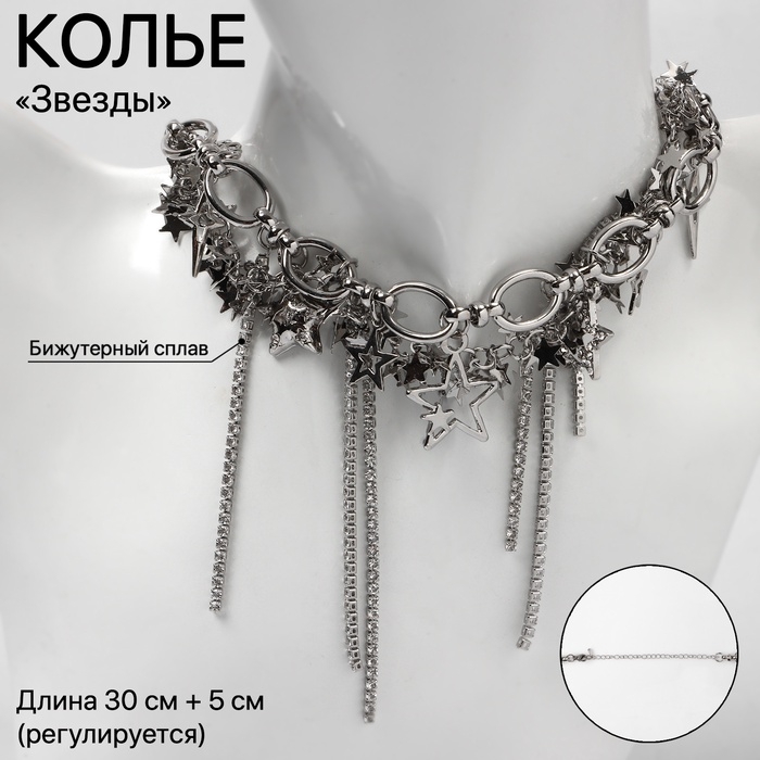 Колье «Бабочка» бусины, цвет серебро, 40 см