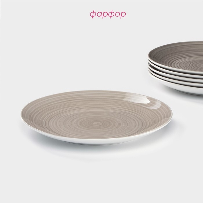 Набор фарфоровых тарелок Доляна «Палитра», 6 предметов: d=19 см, цвет серый