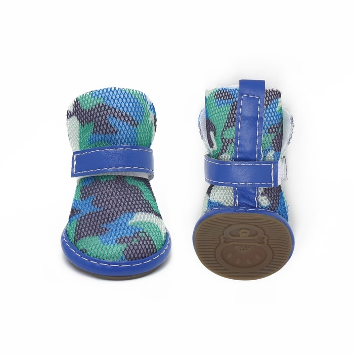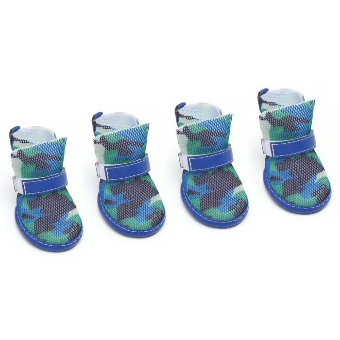 Ботинки для собак "Боец", набор 4 шт, размер 2 (подошва 4,5 х 3,7 см) камуфляж синий