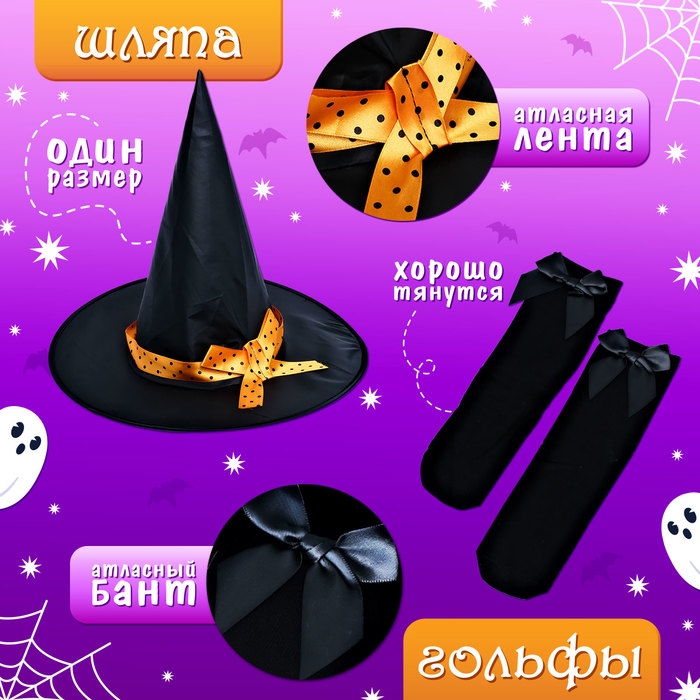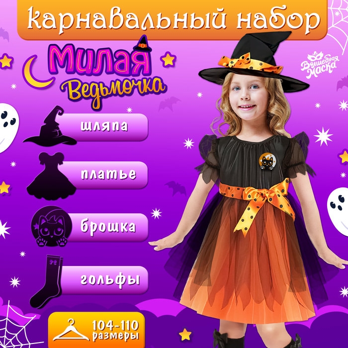 Карнавальный набор «Милая ведьмочка», рост 104-110 см, цвет оранжевый