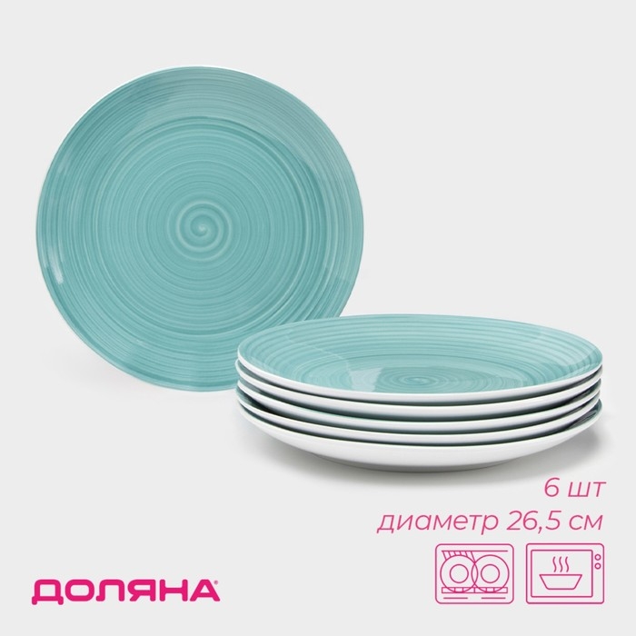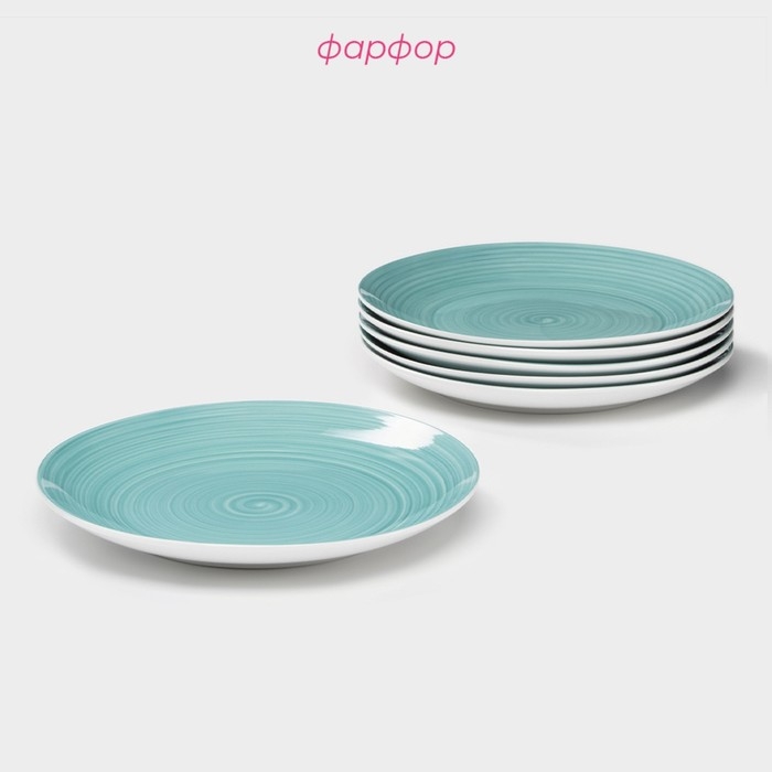 Набор фарфоровых тарелок Доляна «Палитра», 6 предметов, d=19 см, цвет бирюзовый