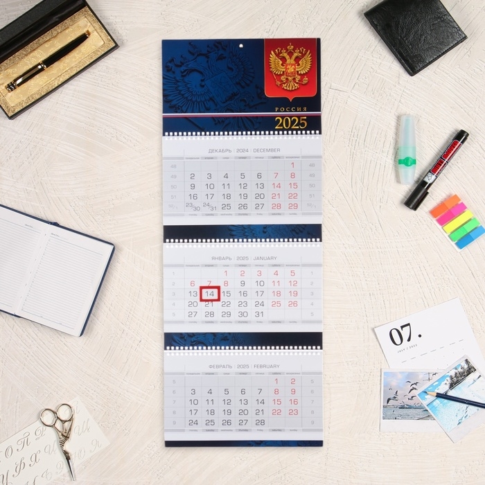 Календарь квартальный Премиум трио "Россия" 2025 год, 29,7 х 75,8 см
