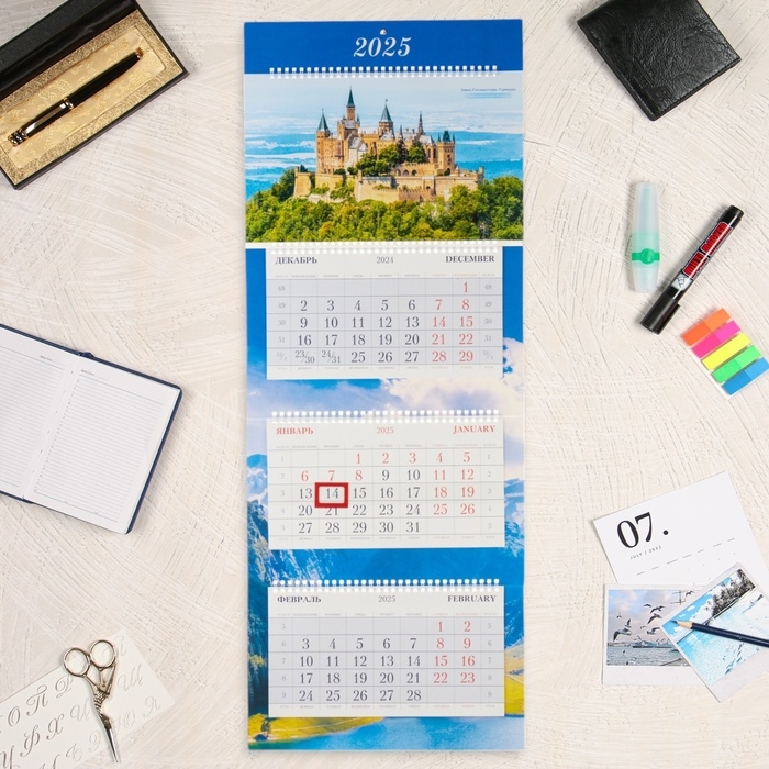 Календарь квартальный Премиум трио "Прекрасные замки" 2025 год, 32 х 84 см