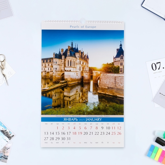 Календарь перекидной на ригеле "Жемчужины Европы" 2025 год, 30 х 45 см
