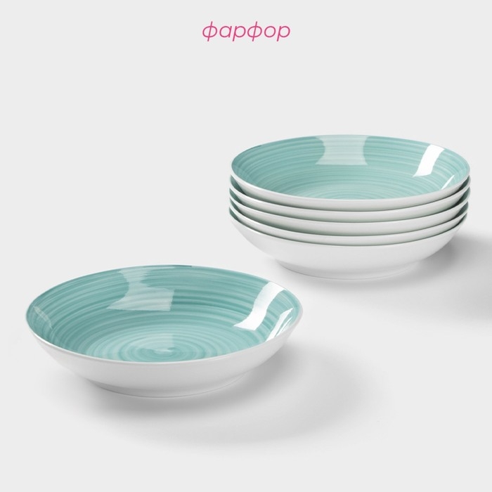 Набор тарелок глубоких Доляна «Палитра», 6 предметов, 700 мл, 20,2×20,2×4,2 см, цвет бирюзовый