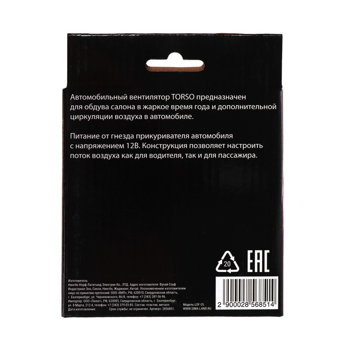 Вентилятор салона TORSO, 12 В, поворотный 360°