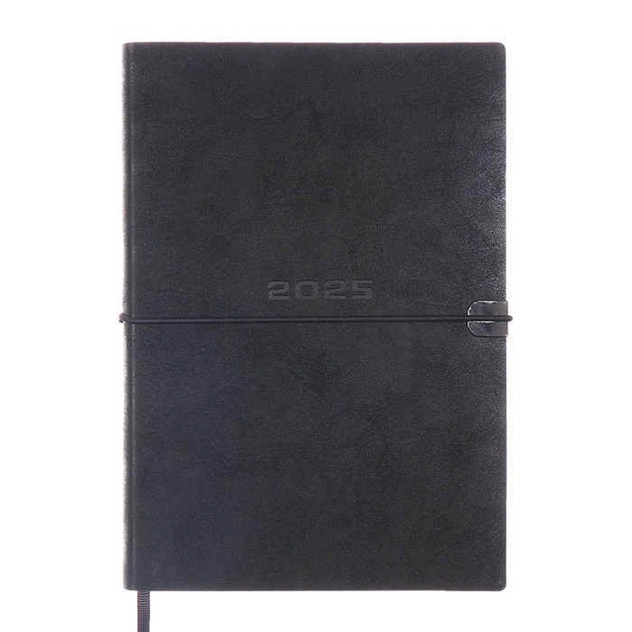 Ежедневник датированный 2025 года, А5, 176 листов ESCALADA, мягкая обложка из искусственной кожи, блинтовое тиснение, ляссе, блок 70 г/м2, чёрный