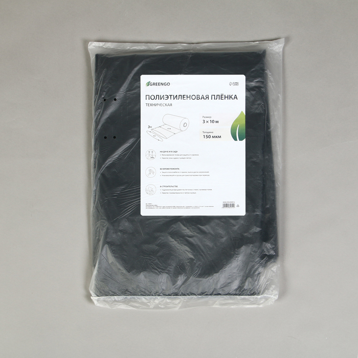 Плёнка из полиэтилена, техническая, толщина 150 мкм, чёрная, 10 × 3 м, рукав (1.5 м × 2), Эконом 50%, для дома и сада, Greengo