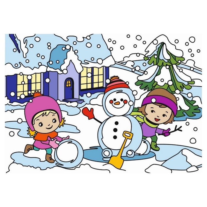 Картина по номерам для малышей Зимняя серия "Снежные забавы" Ркн-127