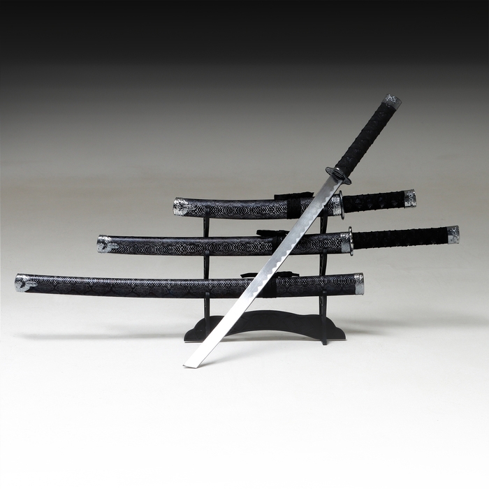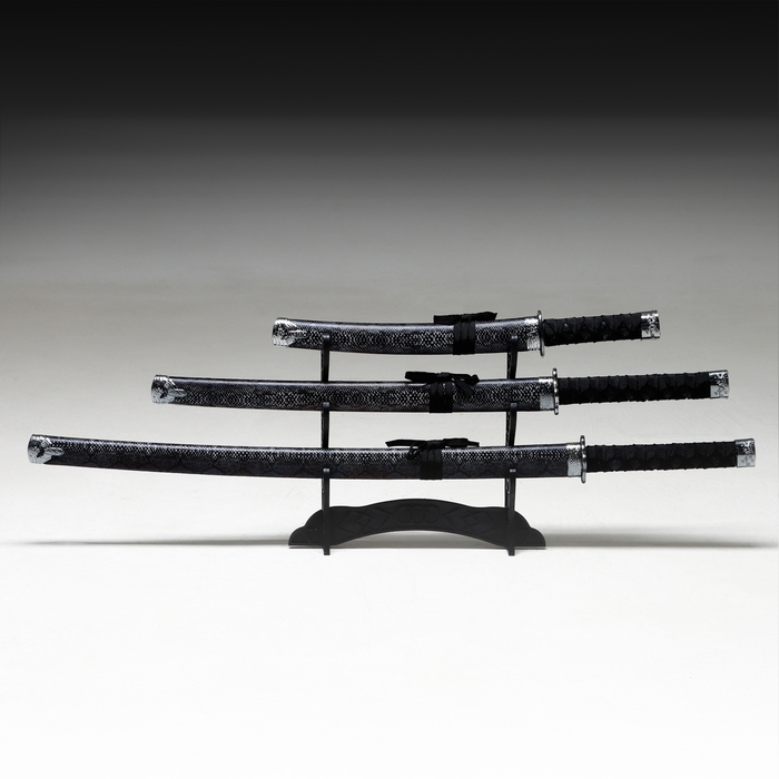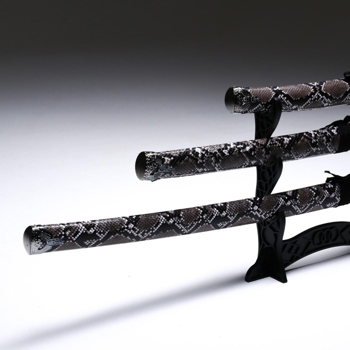 Сув. изделие катаны 3в1 на подставке, ножны кожзам, змея серая 47/70/89см, темная