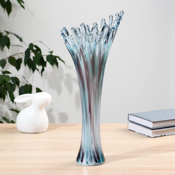 Каждая ваза выдувается мастером. Второй точно такой же не встретить. А случайный пузырёк воздуха или застывшая стеклянная капелька на горлышке лишь подчёркивают её уникальность.