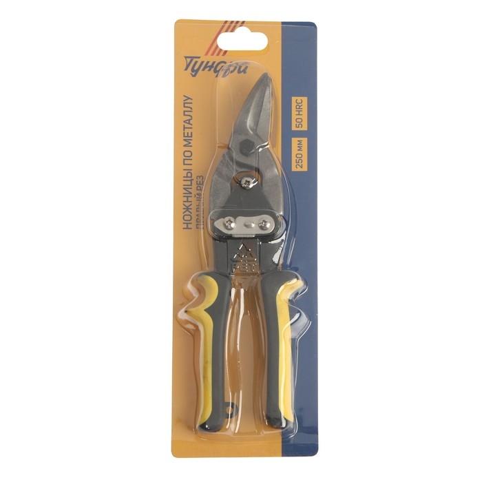 Ножницы по металлу ТУНДРА ПРОФИ, CrV, 2К рукоятки, прямой рез, 250 мм