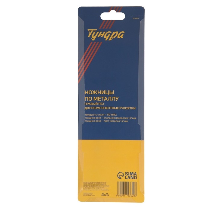 Ножницы по металлу ТУНДРА, 2К рукоятки, правый рез, 250 мм