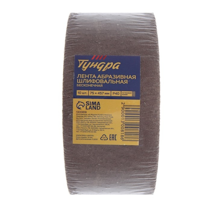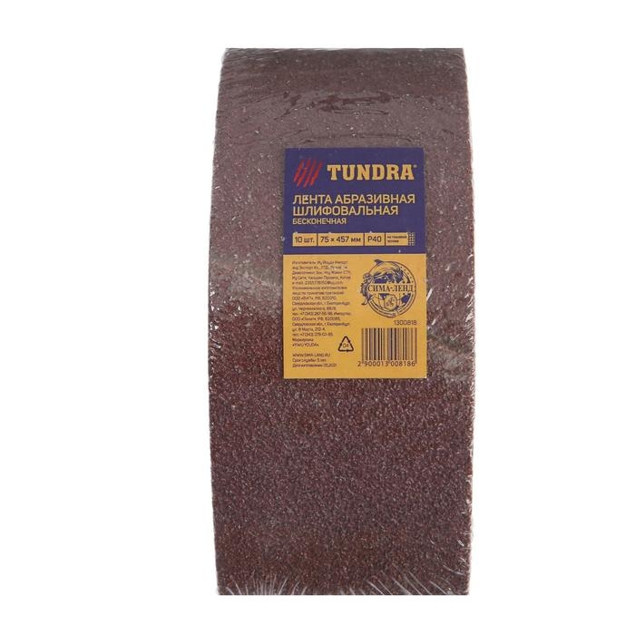 Лента абразивная бесконечная ТУНДРА, на тканевой основе, 75 х 457 мм, Р40, 10 шт.