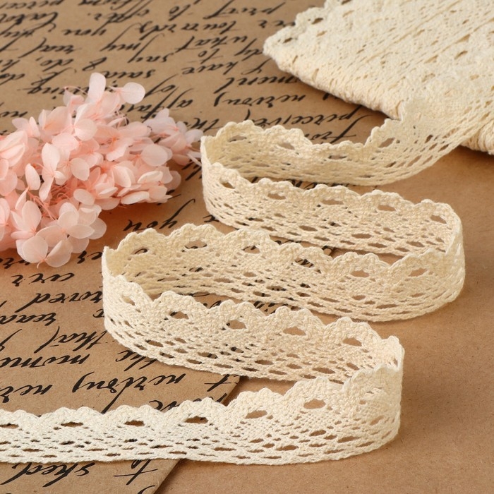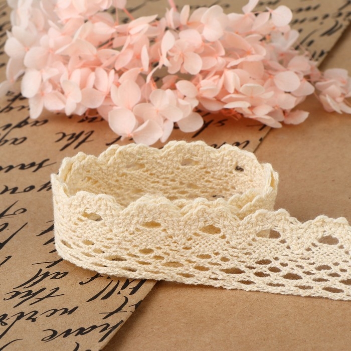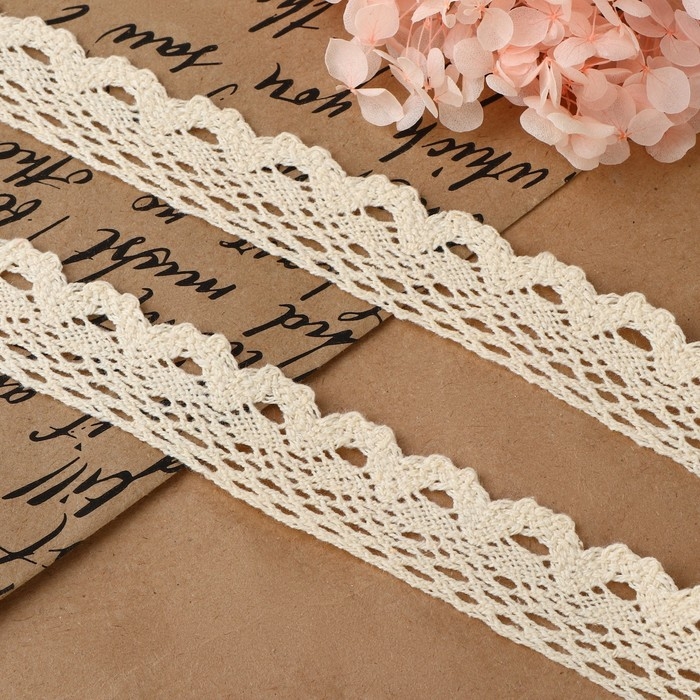 Кружево вязаное, 25 мм × 15 ± 1 м, цвет бежевый