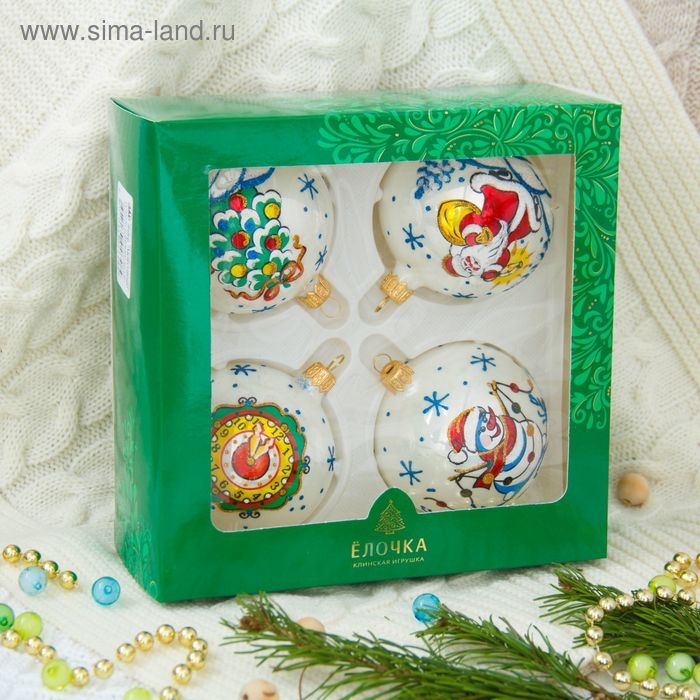 Набор новогодних шаров "Морозный" (набор 4 шт) 7,5 см