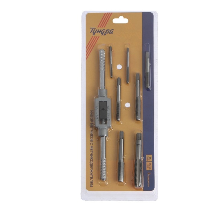 Набор метчиков ТУНДРА, М3 - М12 + метчикодержатель, 8 предметов