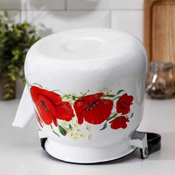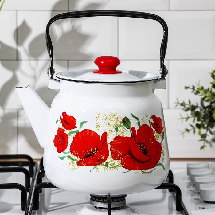 Чайник «Маки», 3,5 л, эмалированная крышка, цвет белый