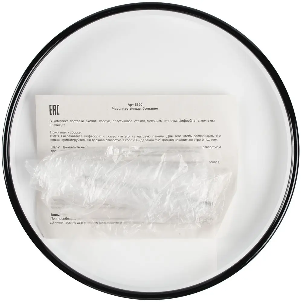 Циферблат в комплект не входит, но его можно изготовить в индивидуальном дизайне методом полноцветной печати. Подготовьте макет согласно конструктору, напечатайте его на тонком плотном картоне, вырежьте по контуру и аккуратно поместите в часы. Чтобы разобрать часы, аккуратно отодвиньте пластиковые защелки на корпусе по одной и приподнимите заднюю крышку. Для упора можно использовать ребра-полоски на задней крышке.