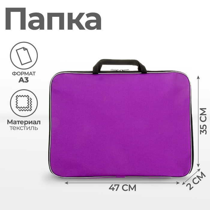Папка для чертежей и рисунков А3, 470 х 350 х 20 мм, с ручками, текстильная, Calligrata Стандарт, Фиолетовая, плотность 600D