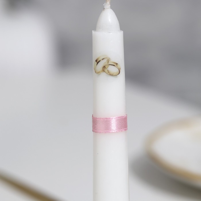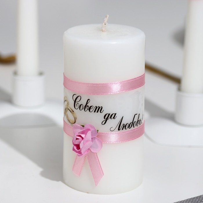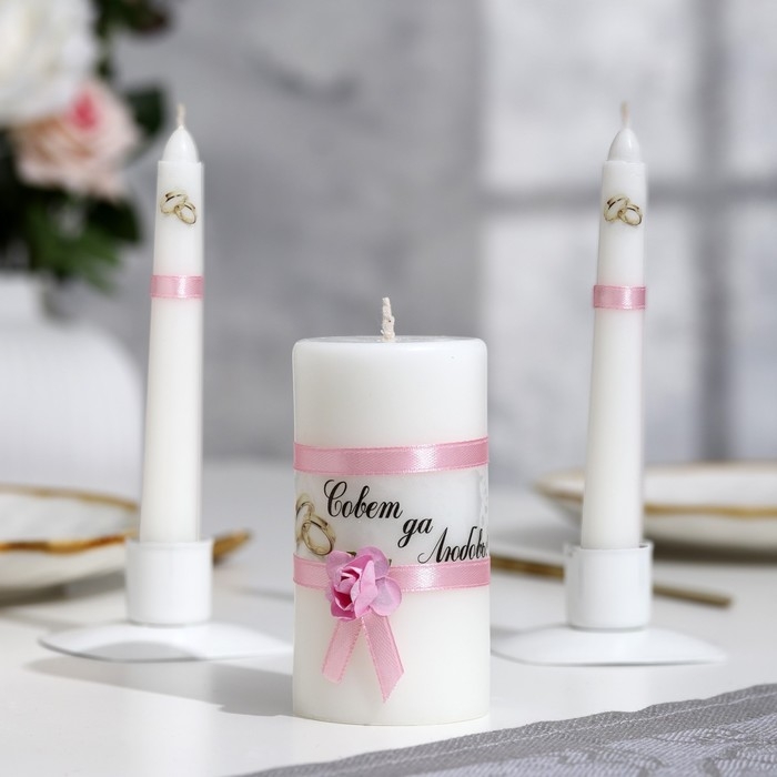 Набор свечей свадебных "Совет да любовь с розой"розовый:родительские 1,8х15см,очаг 5х9,5см
