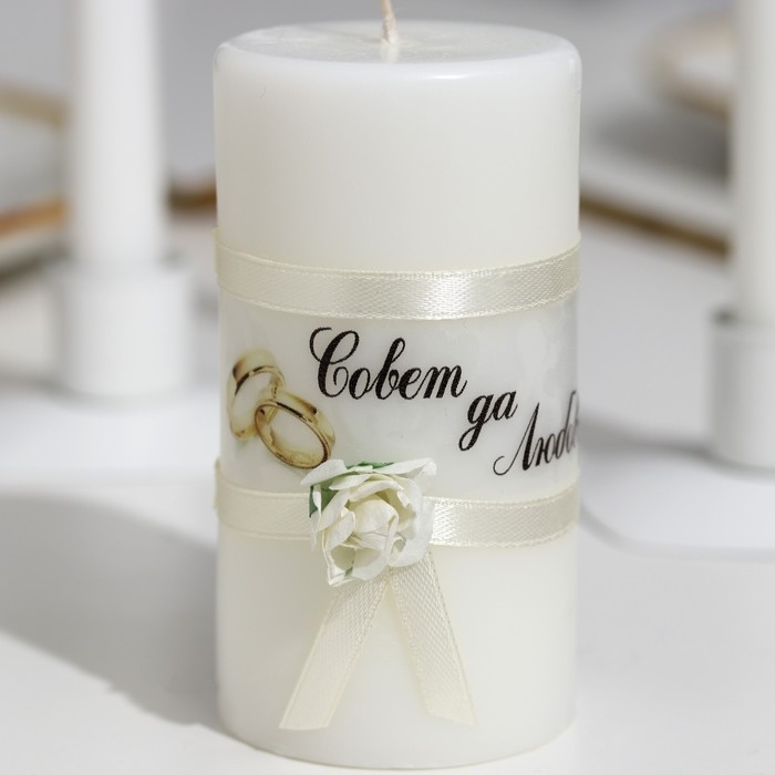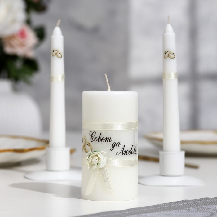 Набор свечей свадебных "Совет да любовь с розой "белый: родительские 1,8х15; очаг 5х9,5 см