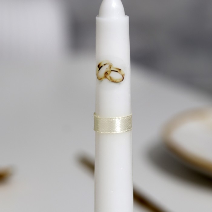 Набор свадебных свечей "Совет да любовь с лентой" шампань: родительские 1,8х15; очаг 5,2х9,5