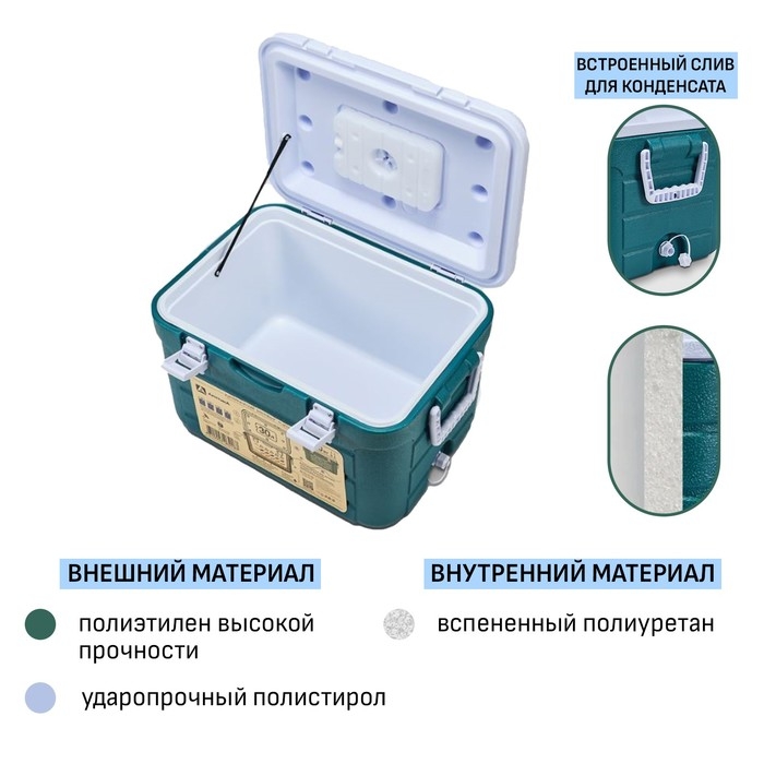 Термоконтейнер "Арктика", 60 л,64 х 43.5 х 40 см, 2 ёмкости для льда, зеленый