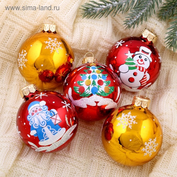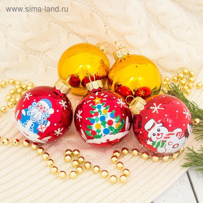Набор новогодних шаров "Волшебство" d-6 см (набор 5 шт)