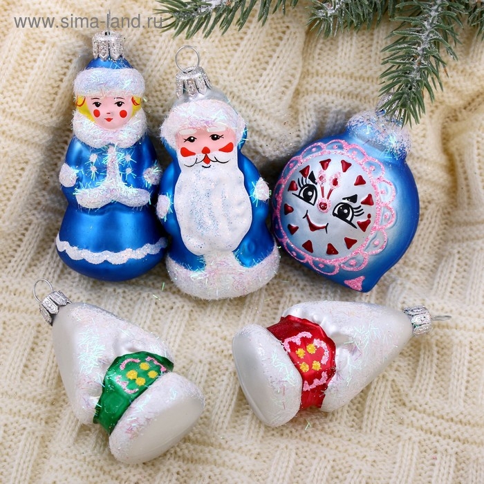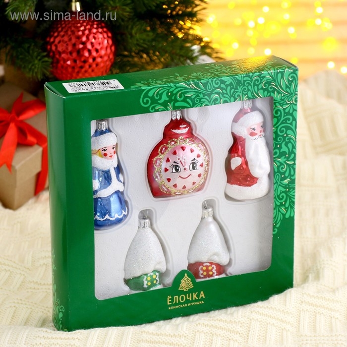 Новогодние ёлочные игрушки «Сказочный набор» — это доброжелательный и стильный акцент для украшения праздничной ёлки. В комплекте 5 стеклянных игрушек разной формы: Дед Мороз, Снегурочка, домик, часы и другие элементы зимней сказки. Украшения выполнены в разноцветной палитре с рисунком и оформлены в духе советского дизайна и фьюжн-стиля. Это решение для тех, кто хочет создать атмосферу Нового года с теплом, историей и светом.