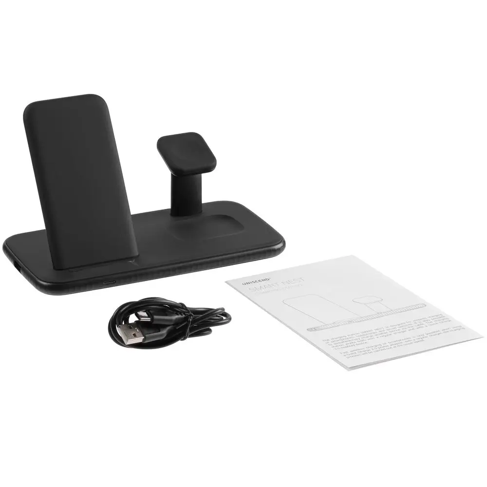 Беспроводная зарядная станция Smart Nest — новый подход к зарядке гаджетов. Вы сможете безопасно заряжать одновременно три устройства без провода и одно устройство через зарядный кабель. Cовместима со смартфонами на iOS или Android и часами (Apple Watch 2–6), наушниками от Apple.