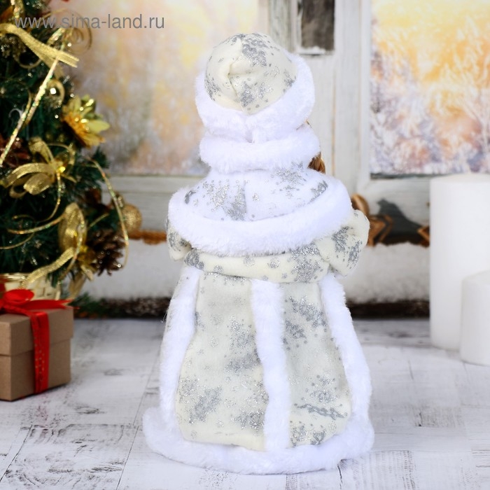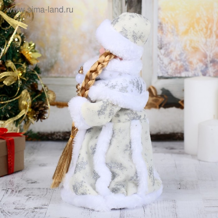 Снегурочка "Белая шубка, с посохом и синей пуговкой" двигается, 31 см
