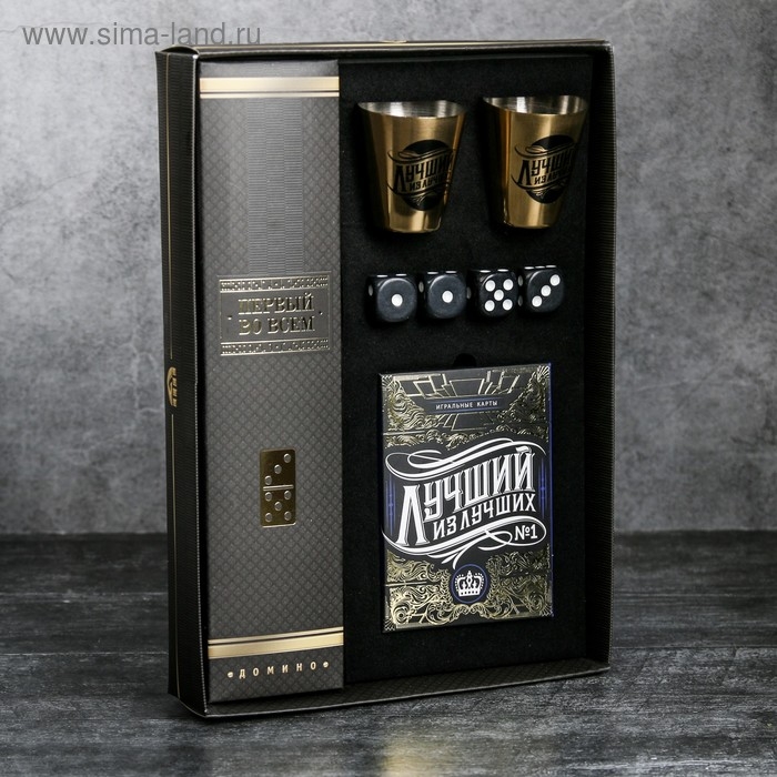 Набор «Лучший из лучших», карты 36 шт., домино, стопки 30 мл 2 шт., кости игральные 4 шт.
