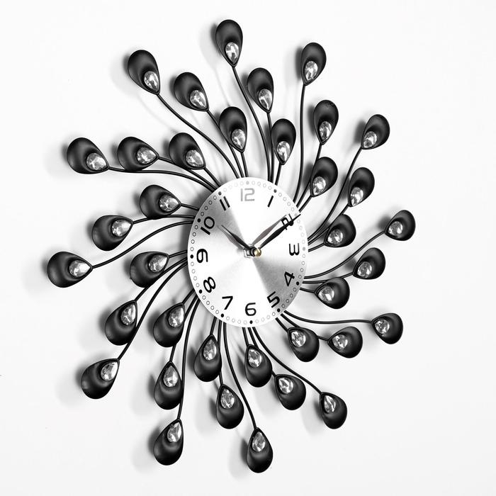 Часы настенные,серия: Ажур,"Лепестки с кристалами", плавный ход, d-13 см, 38 х 38 см