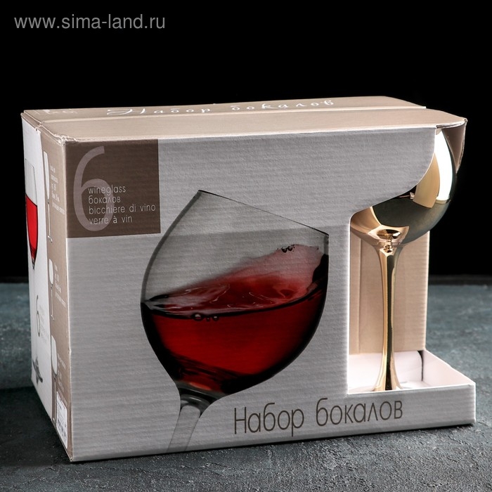 Набор бокалов для вина «Золото», 280 мл, 6 шт, цвет золотой